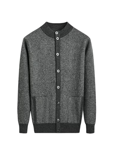 Vsadsau Men Wool Cardigan Sweater Large Buttons Casual Sweater Stand Collar Knitted Thick Jumpers 7