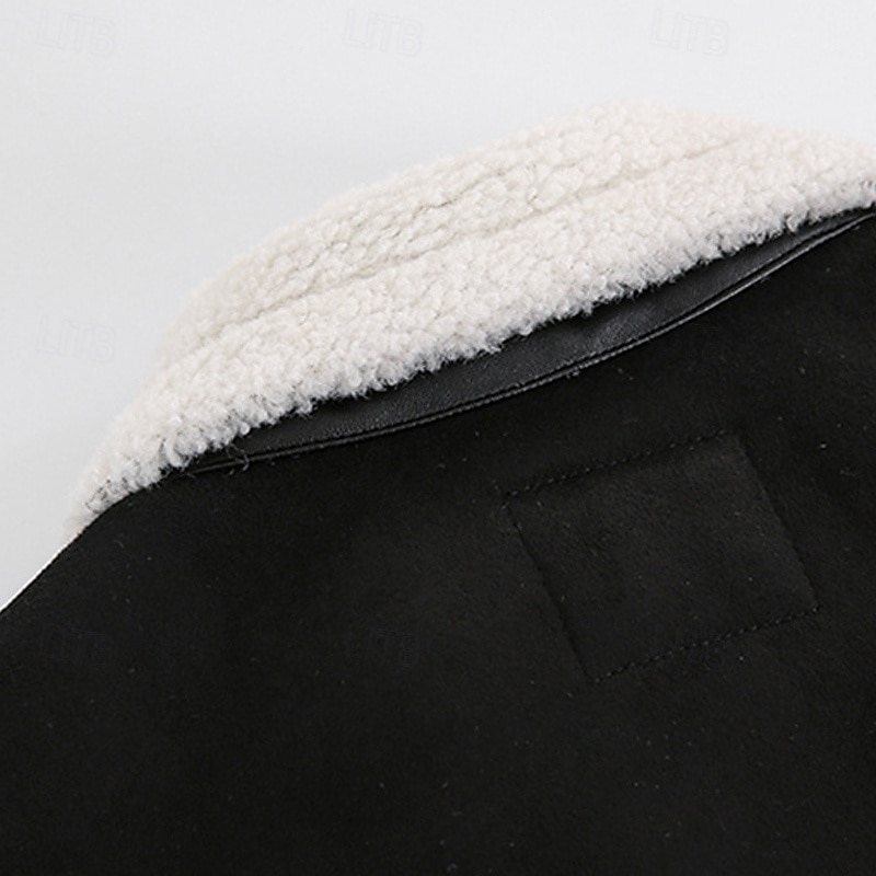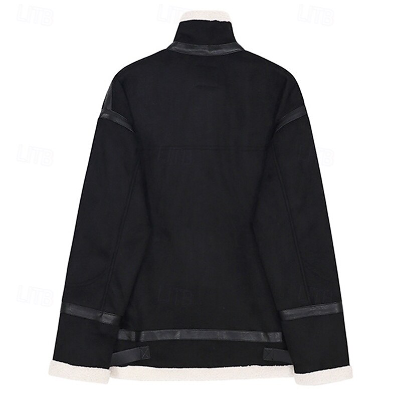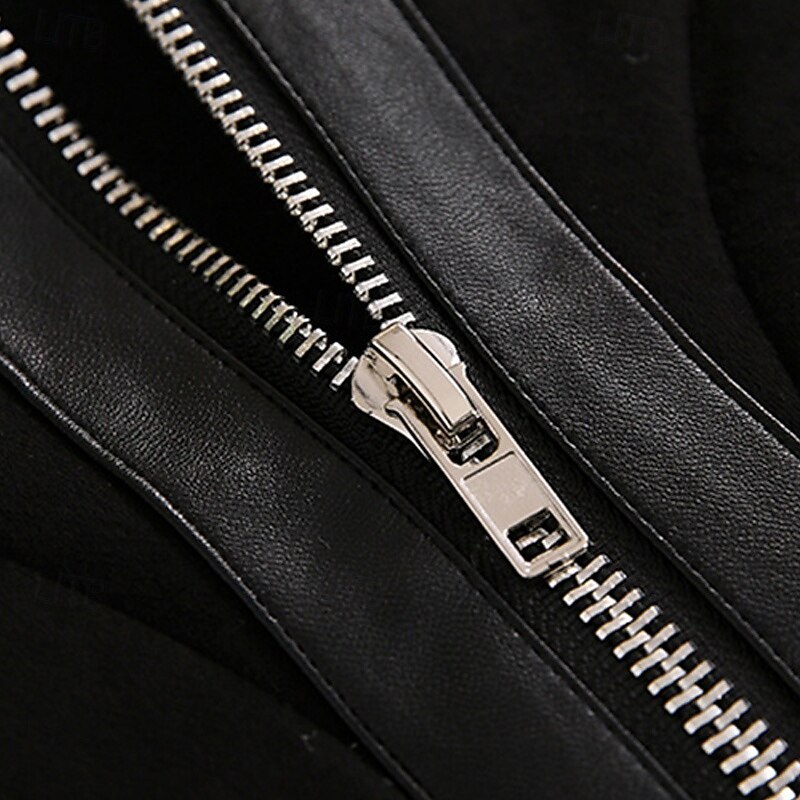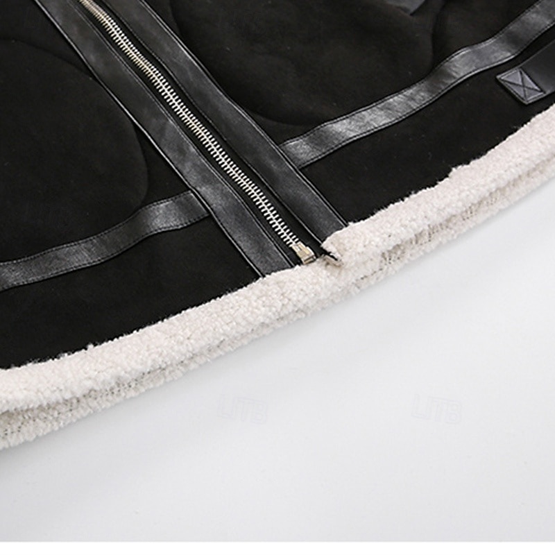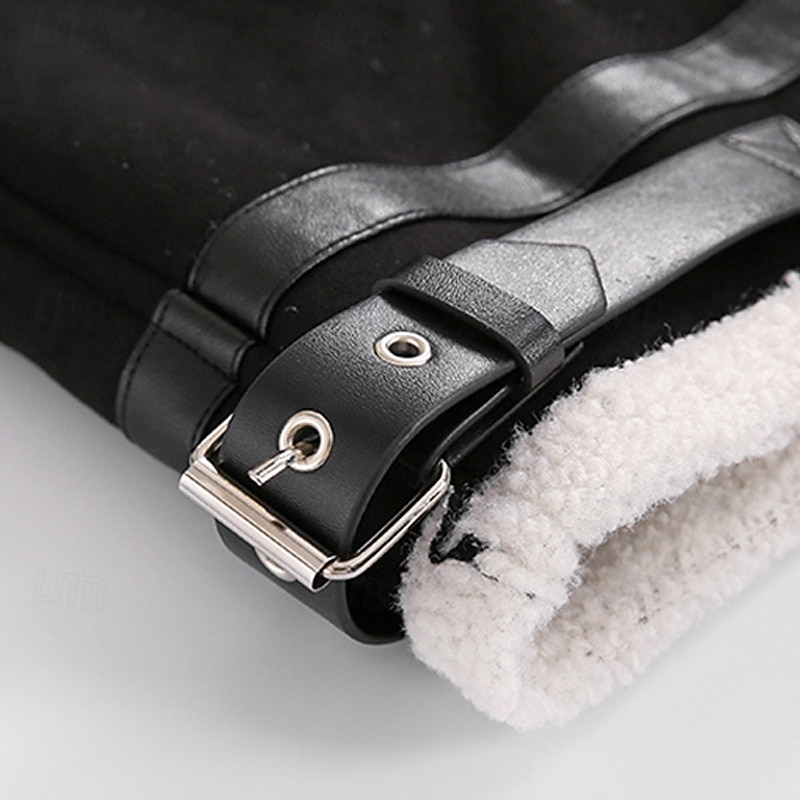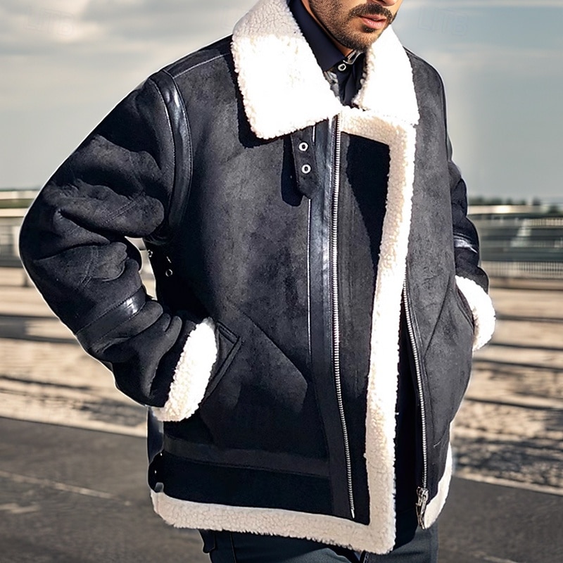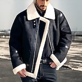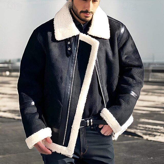 More information about Men's Faux Leather Jacket Fleece Jacket Biker Jacket Motorcycle Jacket Daily Vacation Windproof Warm Pocket Fleece Fall & Winter Plain Fashion Classic Lapel Regular Black Jacket