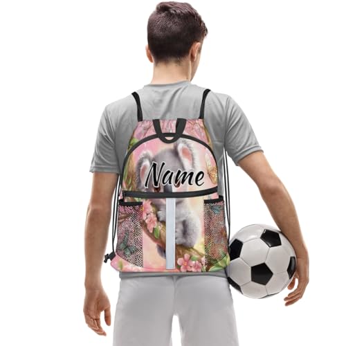 Custom Cute Koala Flower Drawstring Backpack Cartoon Animal Rainbow Personalized Sports Gym Sackpack with Mesh Pocket String Bags for Women Men 1