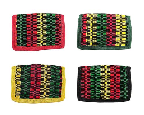 Mia Jewel Shop Rasta Woven Striped Slim Soft Trifold Wallet Coin Purse with Card Slots - Womens Unisex Fashion Handmade Bags Boho Travel Accessories (Red) 5