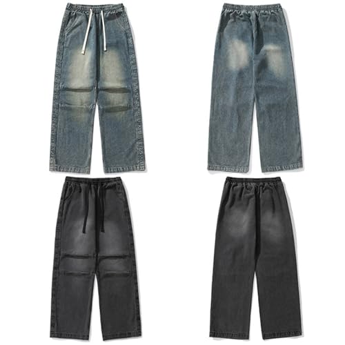 HOT ! Men's Straight Leg Jeans Casual Drawstring Elastic Waist Denim Pants Loose and Minimalist Retro Style