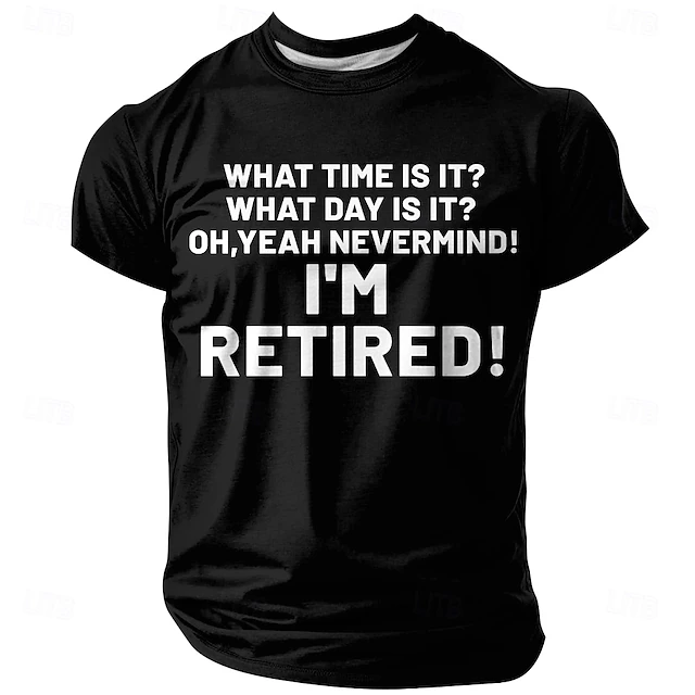 HOT ! Men's Funny Retirement Graphic T-Shirt | 'I'm Retired! What Time Is It? What Day Is It? Oh, Yeah Nevermind!' Lifestyle Humor Short Sleeve Tee