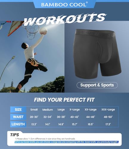 BAMBOO COOL Mens Underwear Support Pouch Men's Boxer Brief Breathable Underwear 3 pack 4