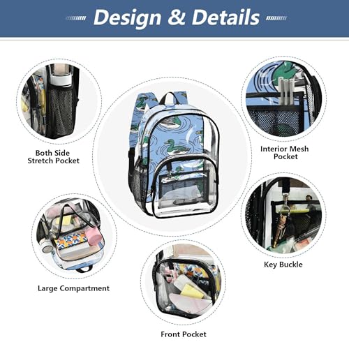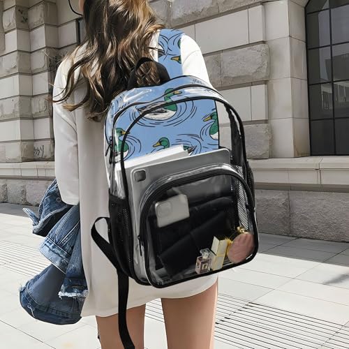 Duck Pattern Clear Backpack PVC Transparent Backpack Lightweight Book Bag Capacity Clear Bag for Kids Boys Girls