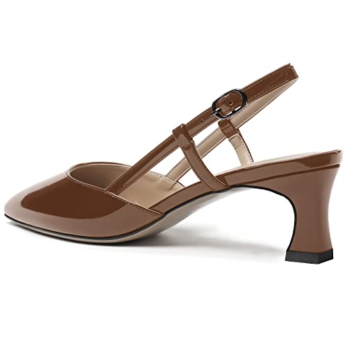 SKYSTERRY Women's Patent Pointed Toe Cutout Slingback Spool Low Heel Pumps Wedding Evening Dress Shoes 2 Inch