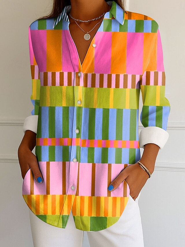 HOT ! Women's Shirt Button Down Tunic Shirt Collar Long Sleeve Graphic Geometric Striped Vintage Tropical Daily Regular Tops Work Daily s Print Pink Blue Purple Green Spring