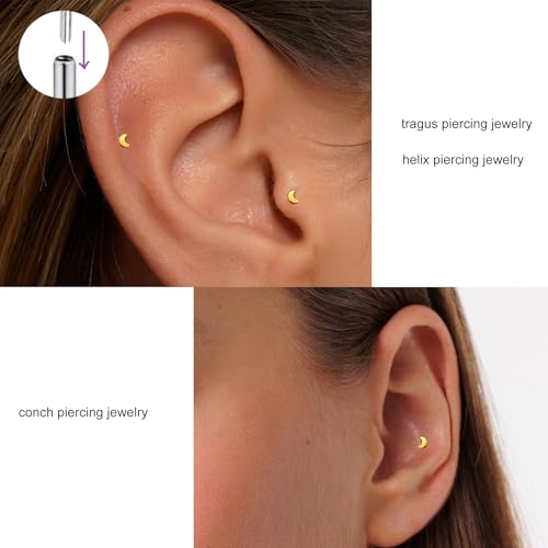 Flat Back Helix Piercing Jewelry, Tiny Threadless Flatback Stud Earrings 20G/18G/16G Titanium Cartilage Star Tragus Earrings Set Hypoallergenic Small Nose Conch Piercing Jewelry 1