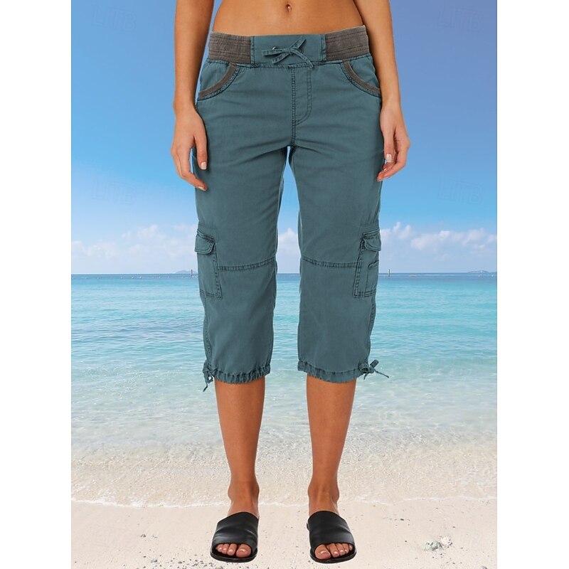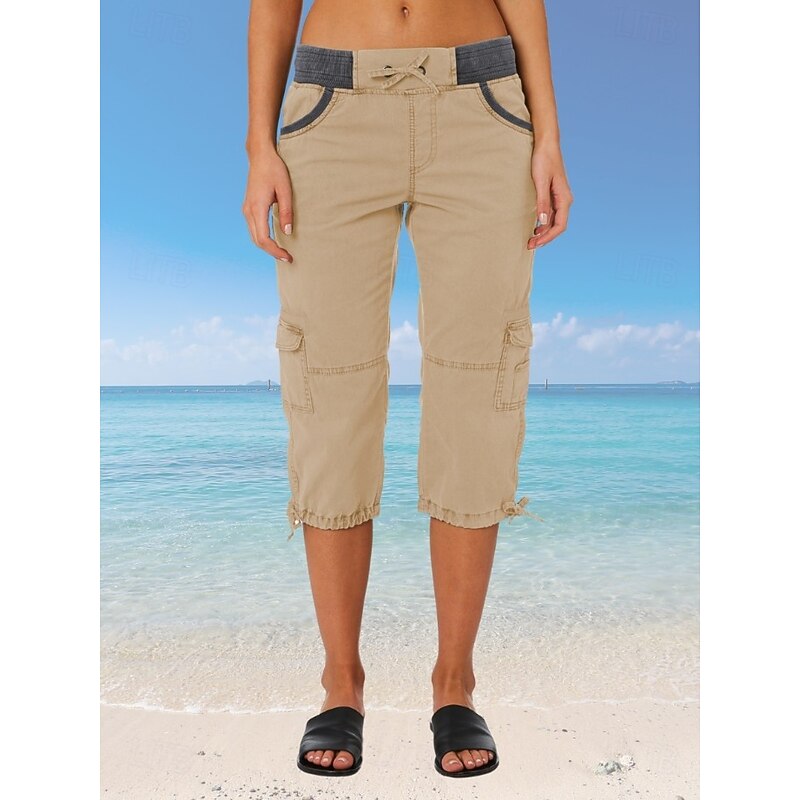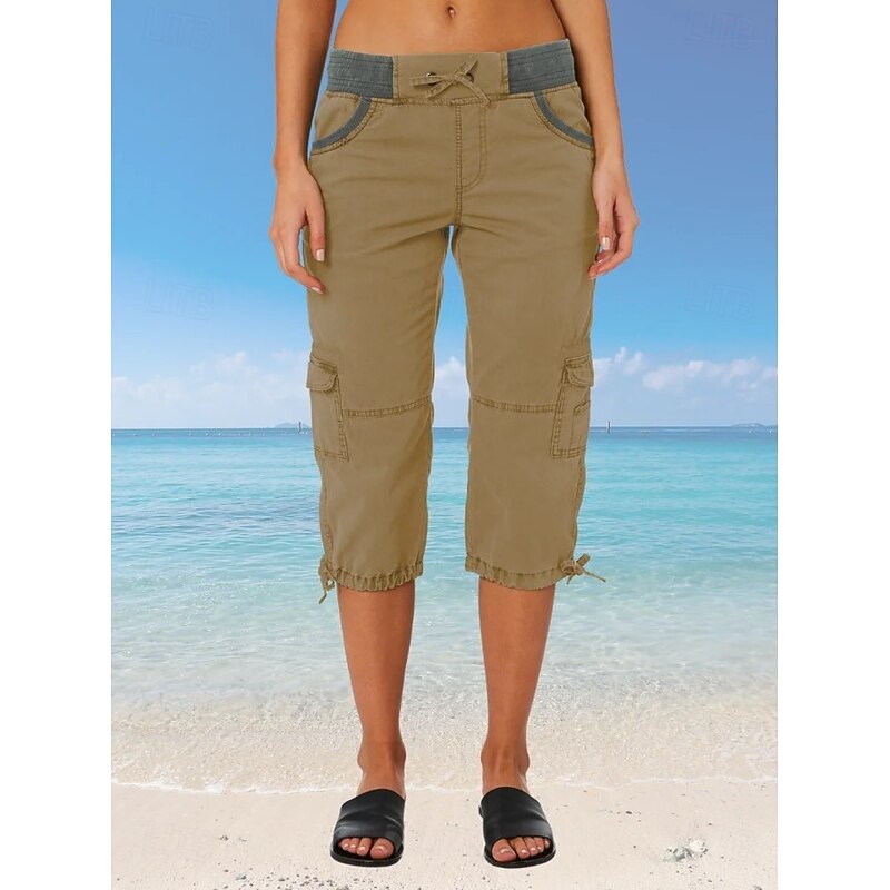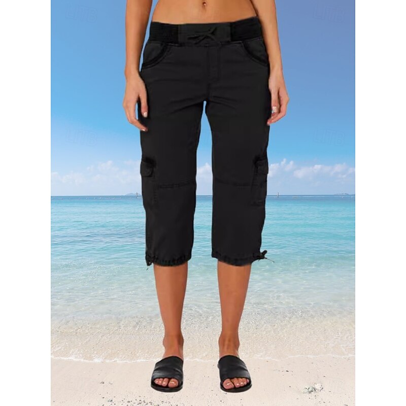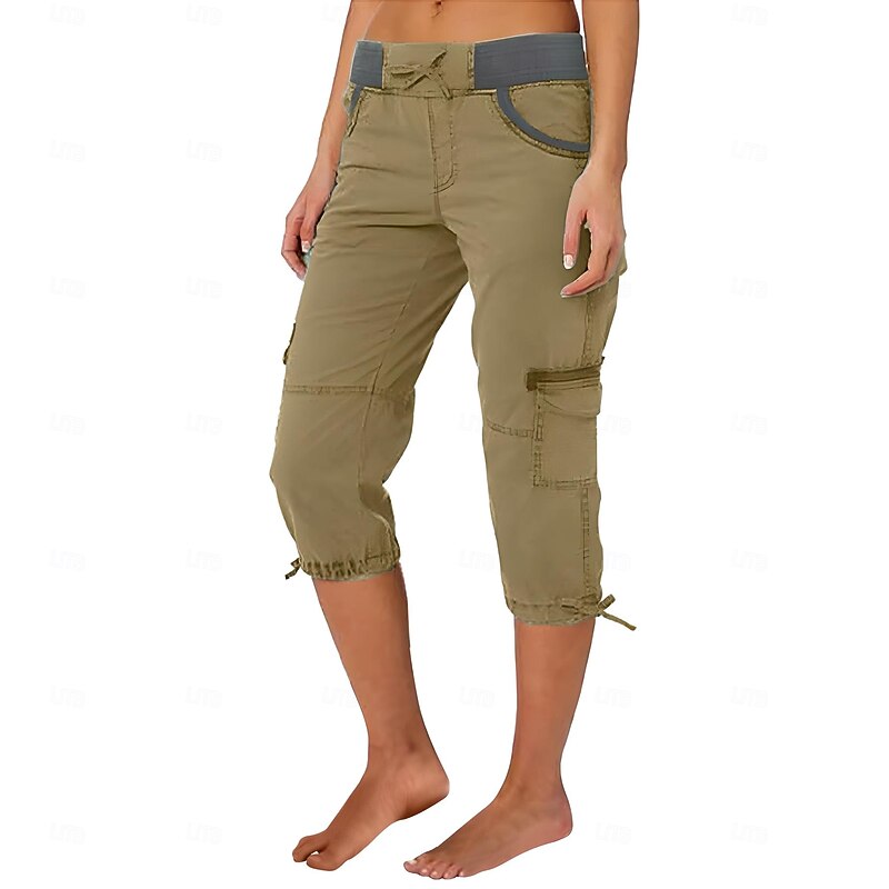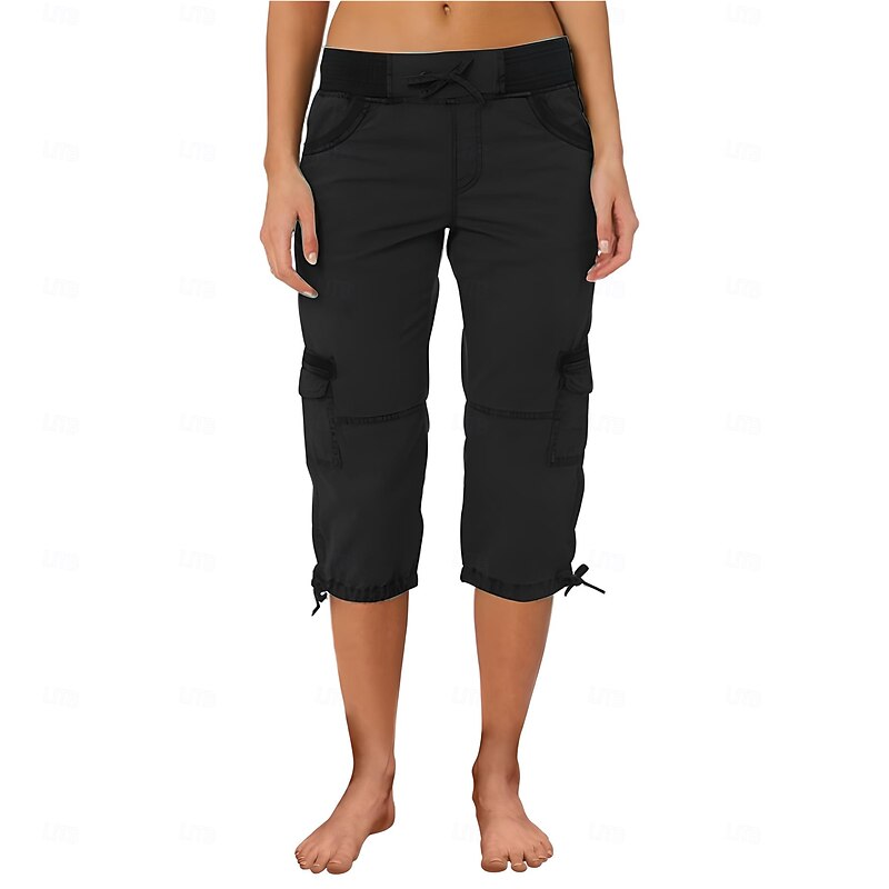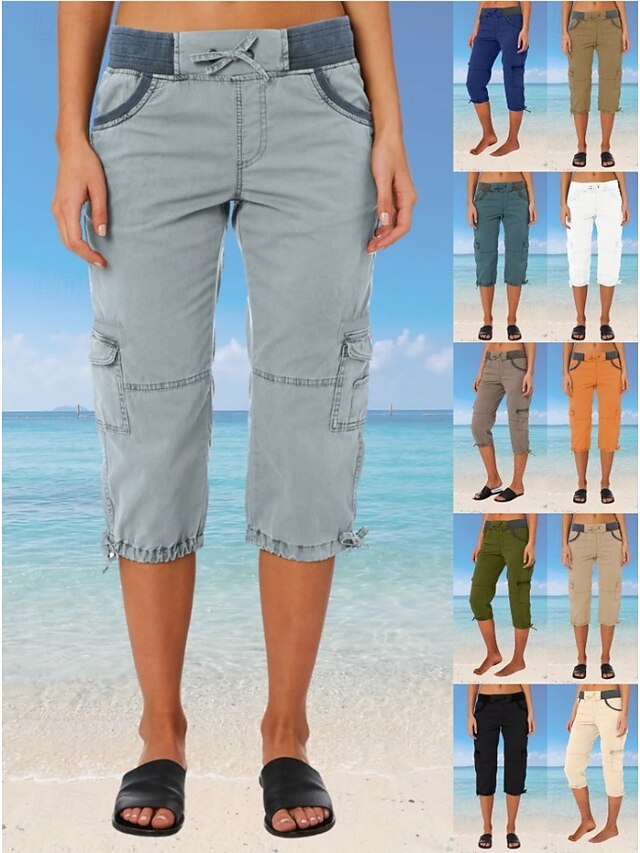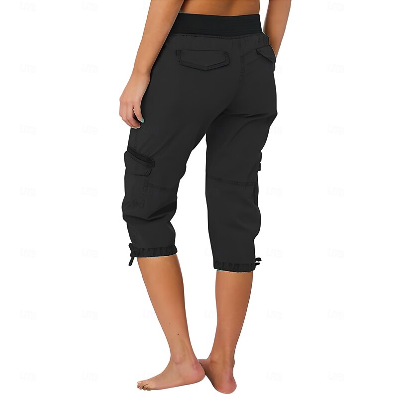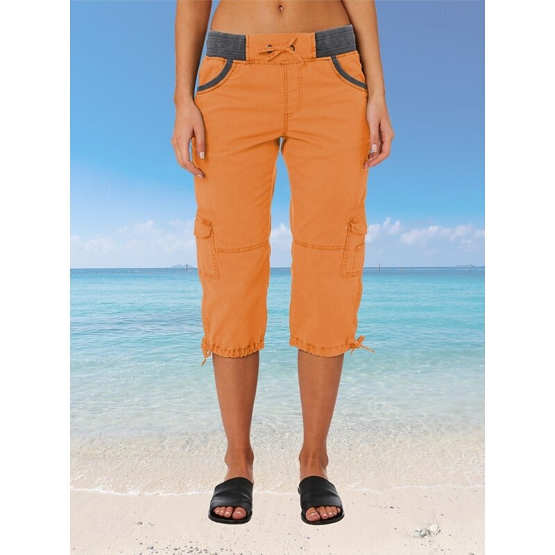 More information about Women's Cargo Pants Vacation Fashion Streetwear Calf-Length High Waist Plain Pocket Comfy Soft Comfortable Micro-elastic Outdoor Street Yellow-Brown Black White Orange Summer Regular Fit