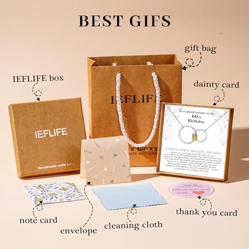 • 60th Birthday Gifts for Women: This necklace is the perfect birthday present for women. It consists of several small circles representing the years and two large circles. The six circles in the middle represent six wonderful ten years, and the two large circles represent the bond between the giver and the recipient. These circles symbolize boundless love, strength, protection and unity. It is very suitable to give to mothers, daughters, granddaughters, grandmothers and friends.