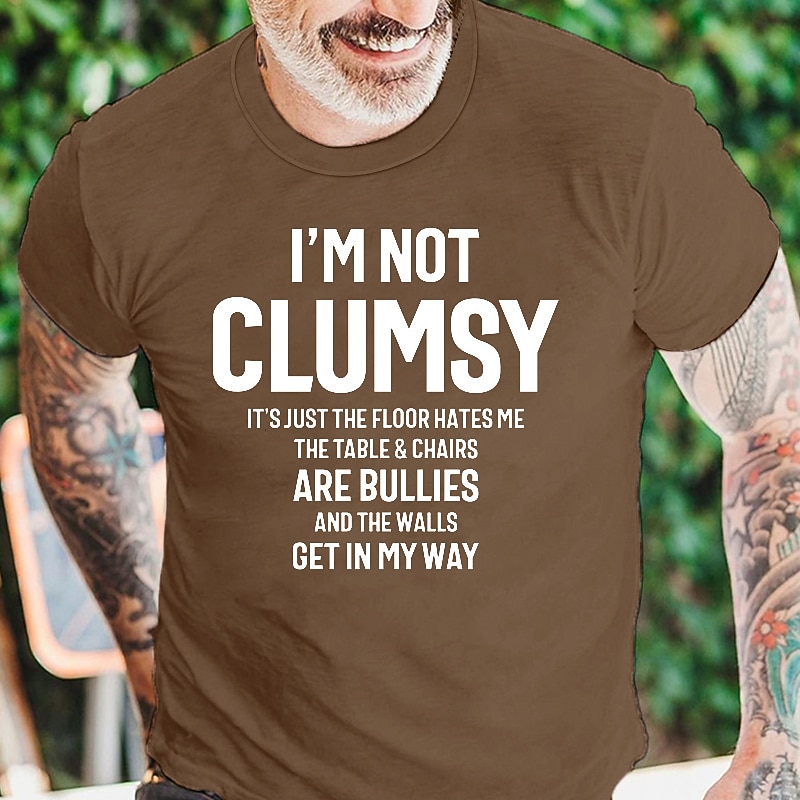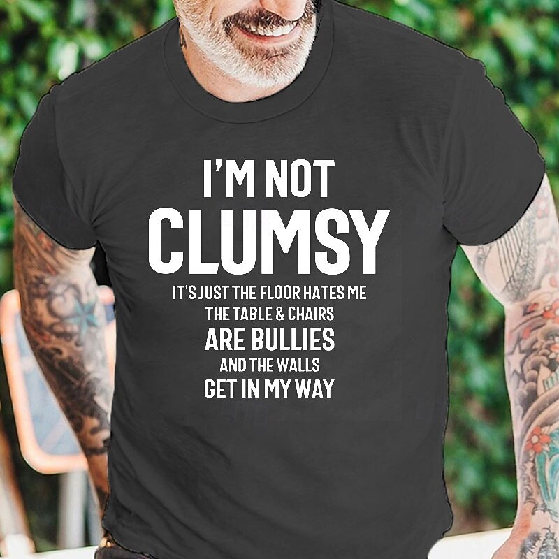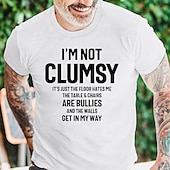 Men's Funny 'I'm Not Clumsy' Graphic T-Shirt - Humorous Short Sleeve Tee with Floor Hates Me & Bullying Chairs Quote 15