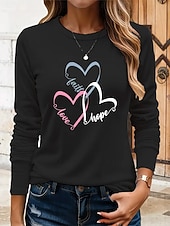 More information about Women's T Shirt Heart Graphic Vintage Stylish Classic Long Sleeve Crew Neck Round Neck Regular Tops Daily Print Black Blue Khaki Rose Pink Summer Spring Fall