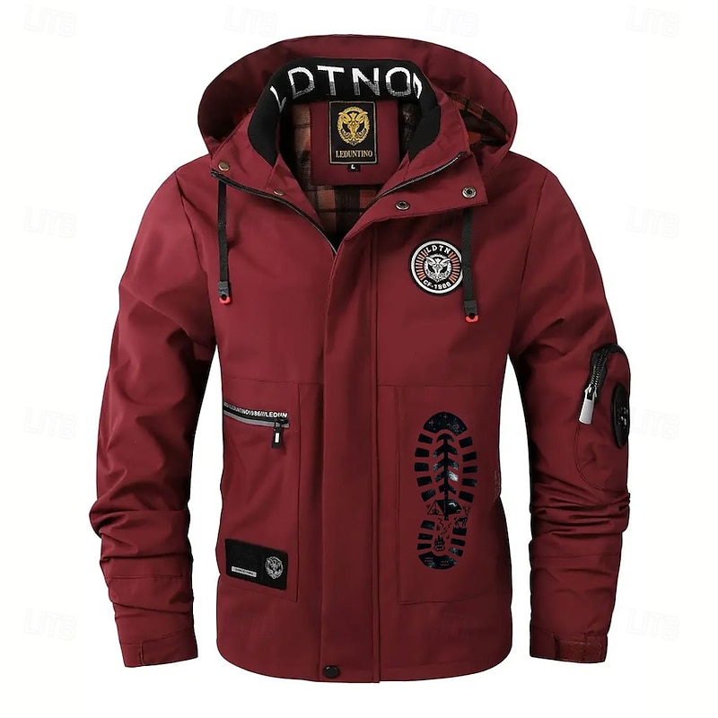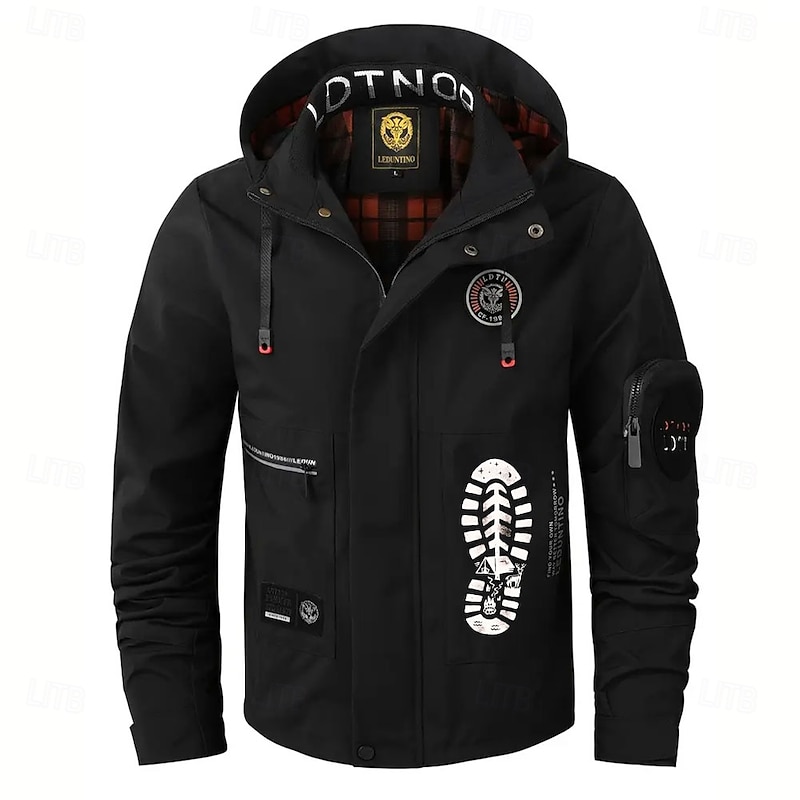 HOT ! Men's Footprint / Paw Windbreaker Hooded Jacket Parka Waterproof Windproof Multi-Pockets Casual Outdoor Camping & Hiking Detachable Hood Full Zip Coat Outerwear Fall Winter Stand Collar Long Sleeve