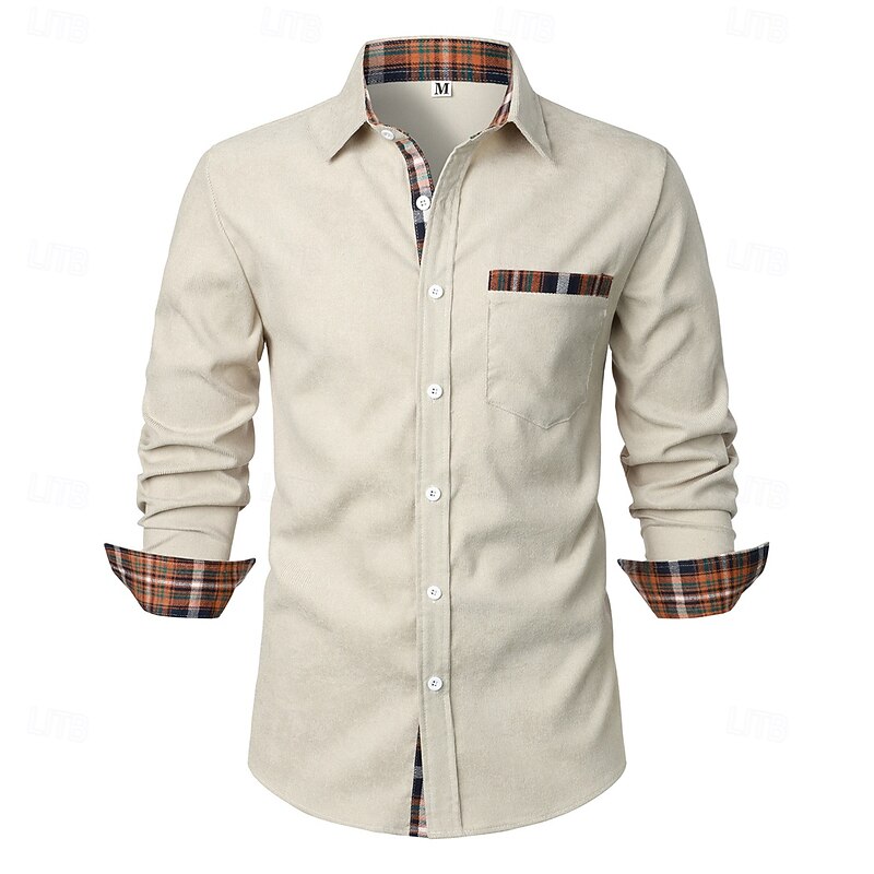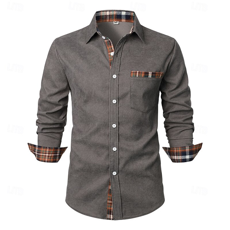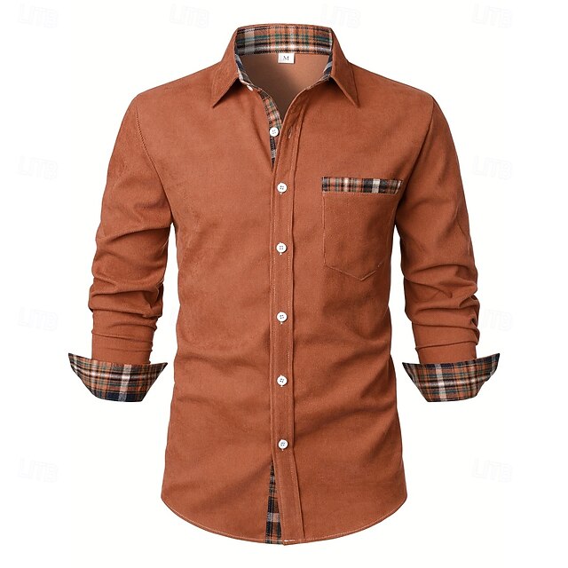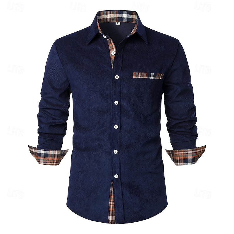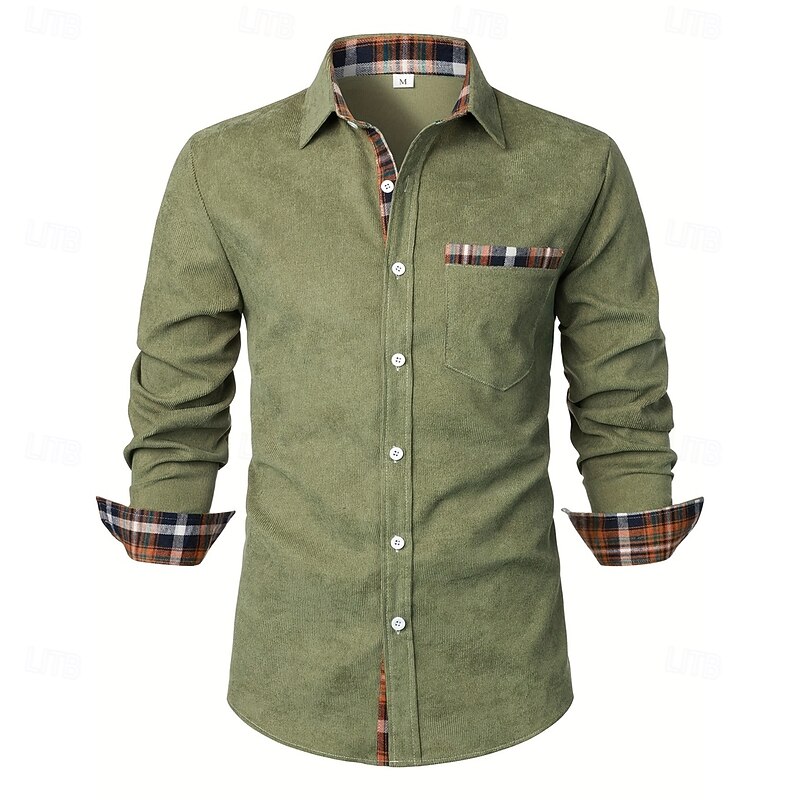 More information about Men's Shirt Corduroy Shirt Overshirt Plaid Outdoor Street Black Navy Blue Brown Green Long Sleeve Collar Winter Spring & Fall Clothing Apparel