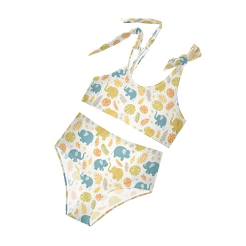 Wusikd Cute Elephants Girls Swimsuits Two Piece Jungle Leaves Swimwear Bikini Set for for Girls Size 3T 1