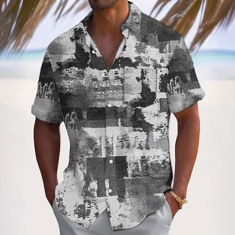 More information about Men's Geometric Color Block Shirt Casual Shirt Button Up Shirt Short Sleeve Fashion Casual Vacation Dailywear Holiday Summer Spring Turndown 3D Print Collared Shirts Front One Pocket Blue Purple