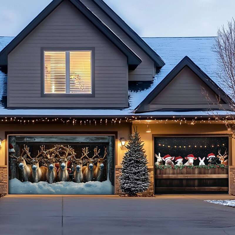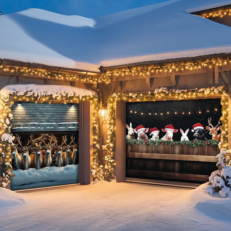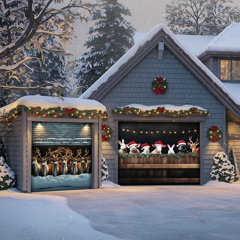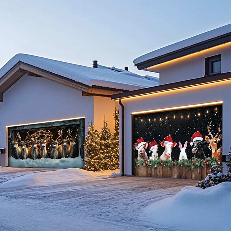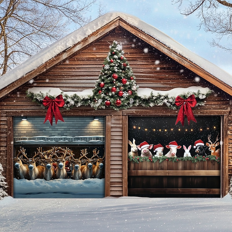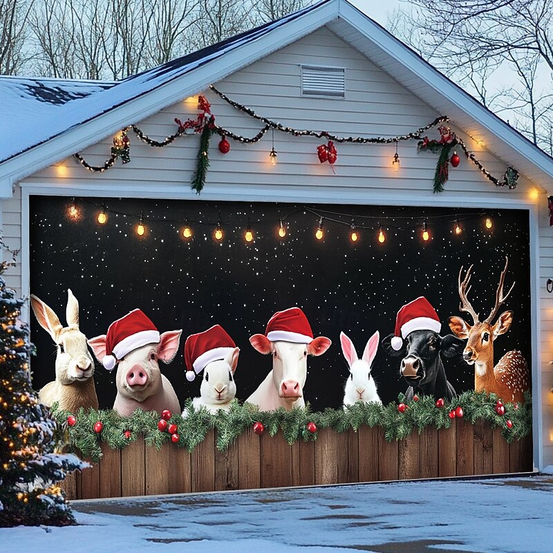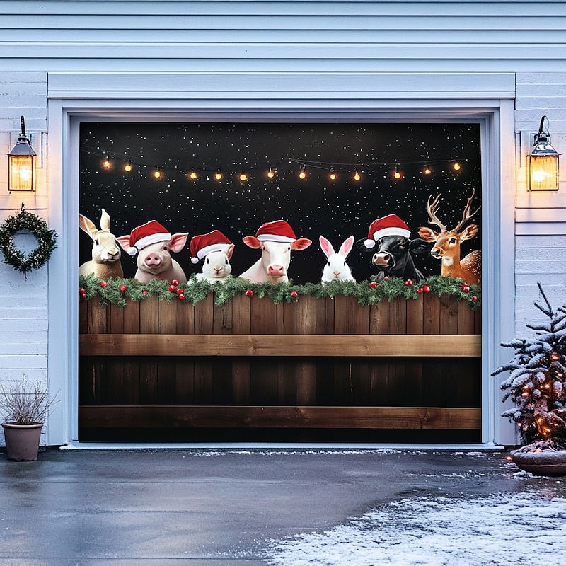 Transform your home for the holidays with our Farmhouse Animals Garage Door Cover, perfect for celebrating the season in style!
