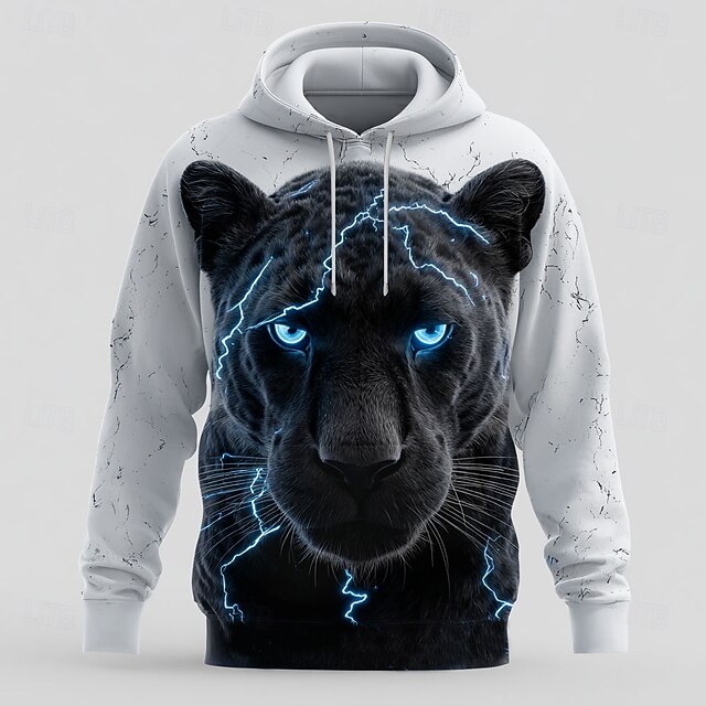 More information about Men's Leopard 3D Hoodies Sweatshirt Cool Party Long Sleeve Crew Neck Club Streetwear Yellow Blue Drawstring Graphic Fall Winter Designer