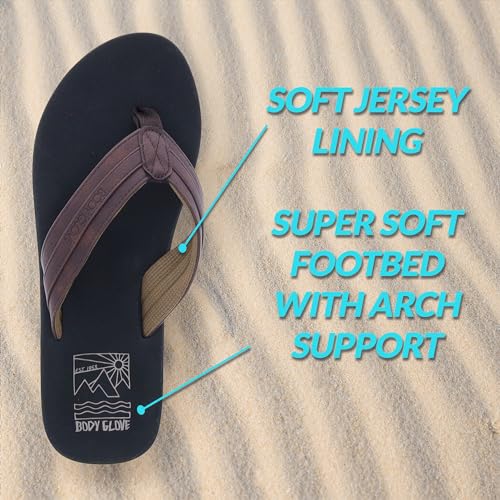 • Arch Support for All-Day Comfort: These Body Glove Men's flip flops prioritize comfort with built-in arch support, ensuring your feet stay comfortable and supported from morning to night