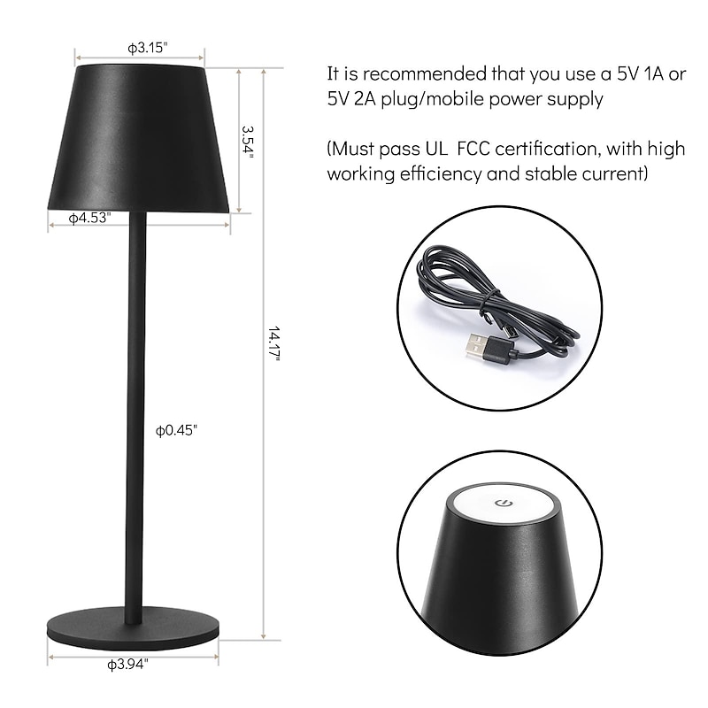 LED Cordless Table Lamp 6600mWh Rechargeable Battery Desk Lamp 3000K Stepless Dimming Night Light IP54 Waterproof Metal Outdoor Portable Lamp for Camping, Restaurant, Patio 14