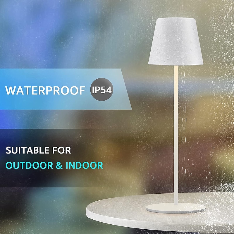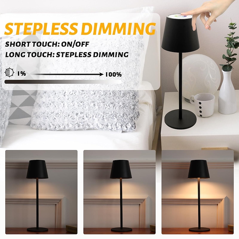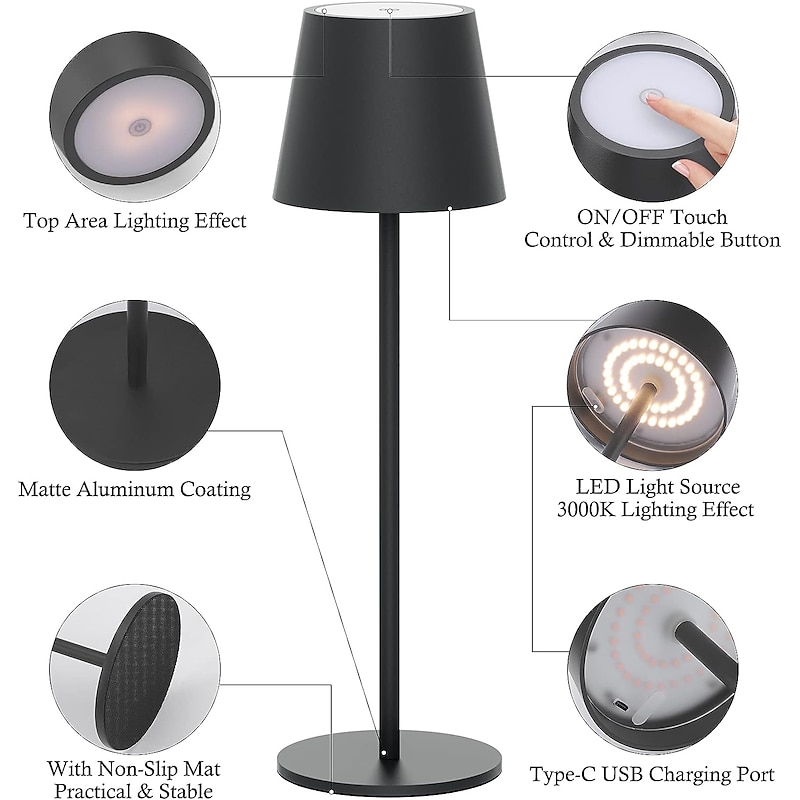 LED Cordless Table Lamp 6600mWh Rechargeable Battery Desk Lamp 3000K Stepless Dimming Night Light IP54 Waterproof Metal Outdoor Portable Lamp for Camping, Restaurant, Patio 11