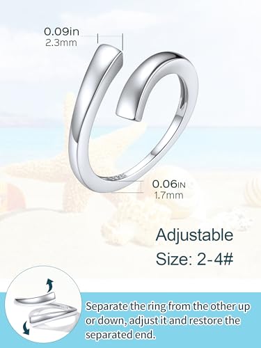 ChicSilver Toe Rings for Women 925 Sterling Silver Toe Ring Hypoallergenic Adjustable Open Rings for Women Summer Jewelry (With Gift Box) 2
