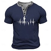 More information about Men's Funny Fishing T Shirt Henley Shirt Short Sleeve Designer Retro Vintage Street Casual Daily Summer Spring Black White Navy Blue Military Green Henley Henley T-Shirt
