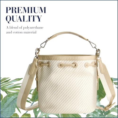 More information about Tommy Bahama Bucket Bag, Women's Mini Handbag with Drawstring Closure and Woven Design, Tan/White