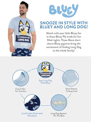 • Perfect Bluey Gift Idea: Whether it's for birthdays, holidays, or family time, these Bluey short sleeve pajamas for men make a fantastic gift for men who love to settle down with the kids and watch Bluey. This cool blue men's nightwear is simply the perfect choice for those looking for dad gifts, funny gifts, or Bluey gifts for extra fun family bedtime.