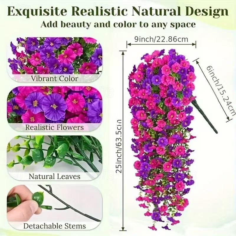 $13.99 - 2PCS UV Resistant Artificial Morning Glory Hanging Flowers, Vibrant Purple and Red-Purple Plastic Faux Flowers for Porch, Garden, Wedding and Outdoor Decor, Weatherproof and Realistic Floral Decoration 2025. Shop for cheap Artificial Plants & Flowers online? Buy at lightinthebox.com on sale today!