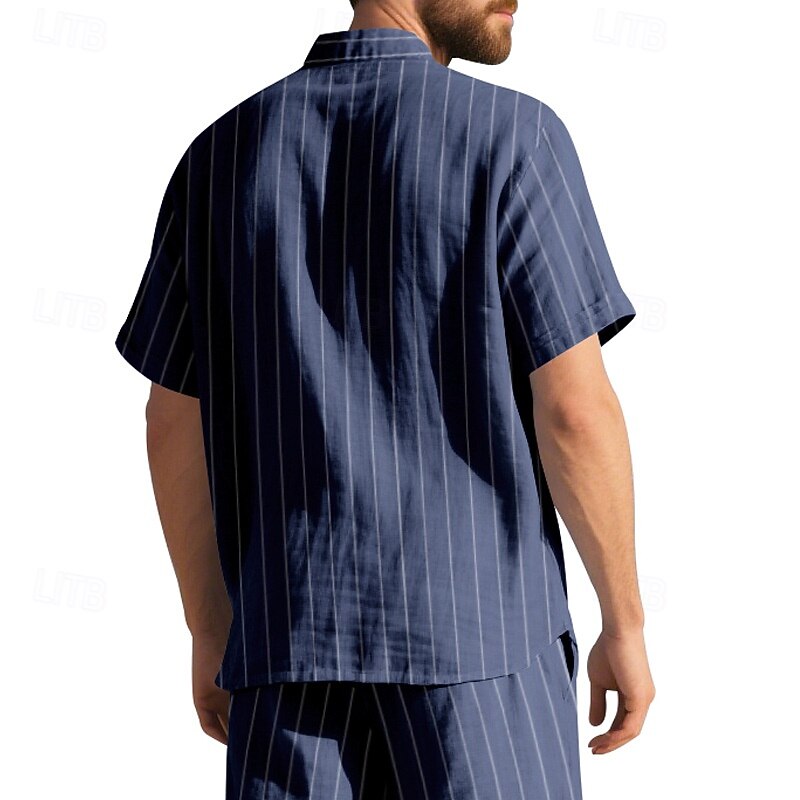 Men's Shirt Linen Shirt Casual Shirt Button Up Shirt Cotton Shirt Stripes Vacation Street Black White Navy Blue Khaki Short Sleeve Turndown Summer Clothing Apparel Button-Down 24