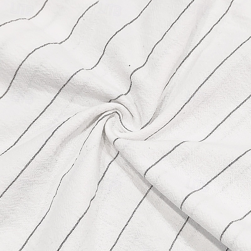 Men's Shirt Linen Shirt Casual Shirt Button Up Shirt Cotton Shirt Stripes Vacation Street Black White Navy Blue Khaki Short Sleeve Turndown Summer Clothing Apparel Button-Down 10