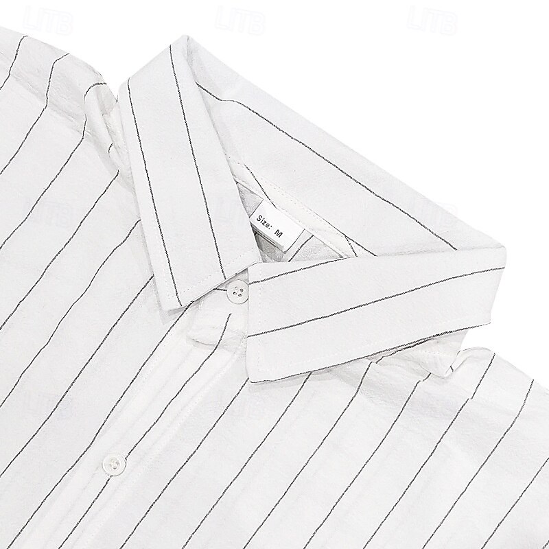 More information about Men's Shirt Linen Shirt Casual Shirt Button Up Shirt Cotton Shirt Stripes Vacation Street Black White Navy Blue Khaki Short Sleeve Turndown Summer Clothing Apparel Button-Down
