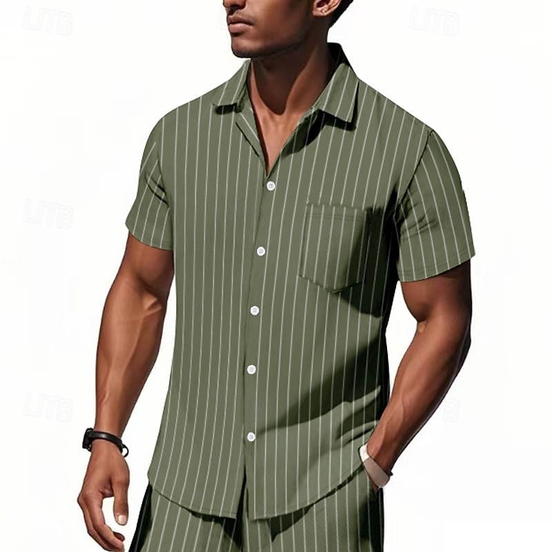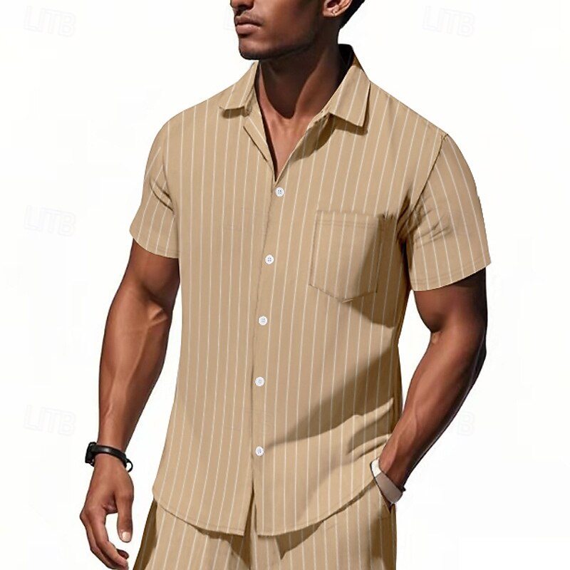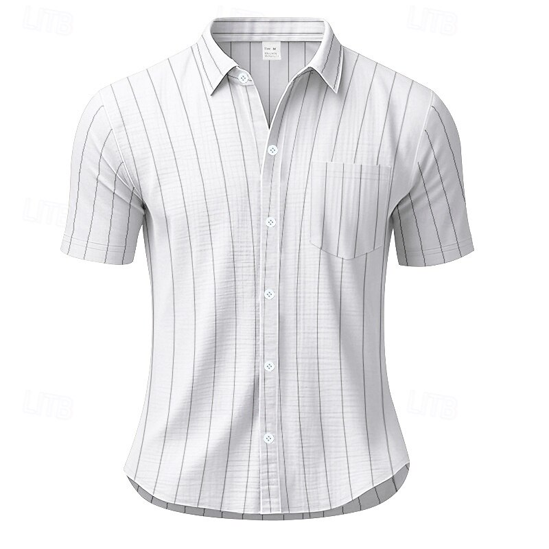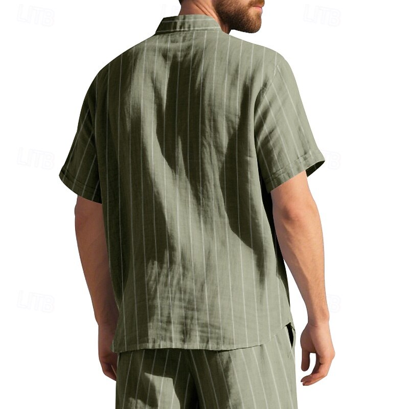 HOT ! Men's Shirt Linen Shirt Casual Shirt Button Up Shirt Cotton Shirt Stripes Vacation Street Black White Navy Blue Khaki Short Sleeve Turndown Summer Clothing Apparel Button-Down