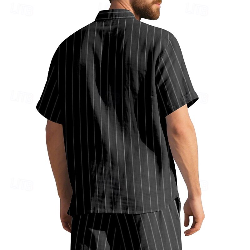 Men's Shirt Linen Shirt Casual Shirt Button Up Shirt Cotton Shirt Stripes Vacation Street Black White Navy Blue Khaki Short Sleeve Turndown Summer Clothing Apparel Button-Down 26