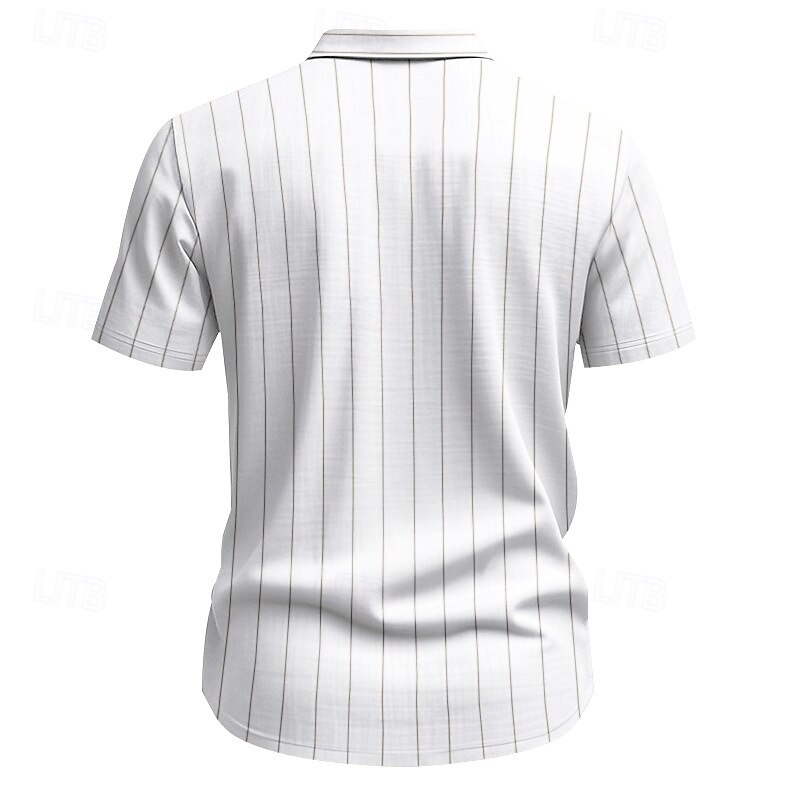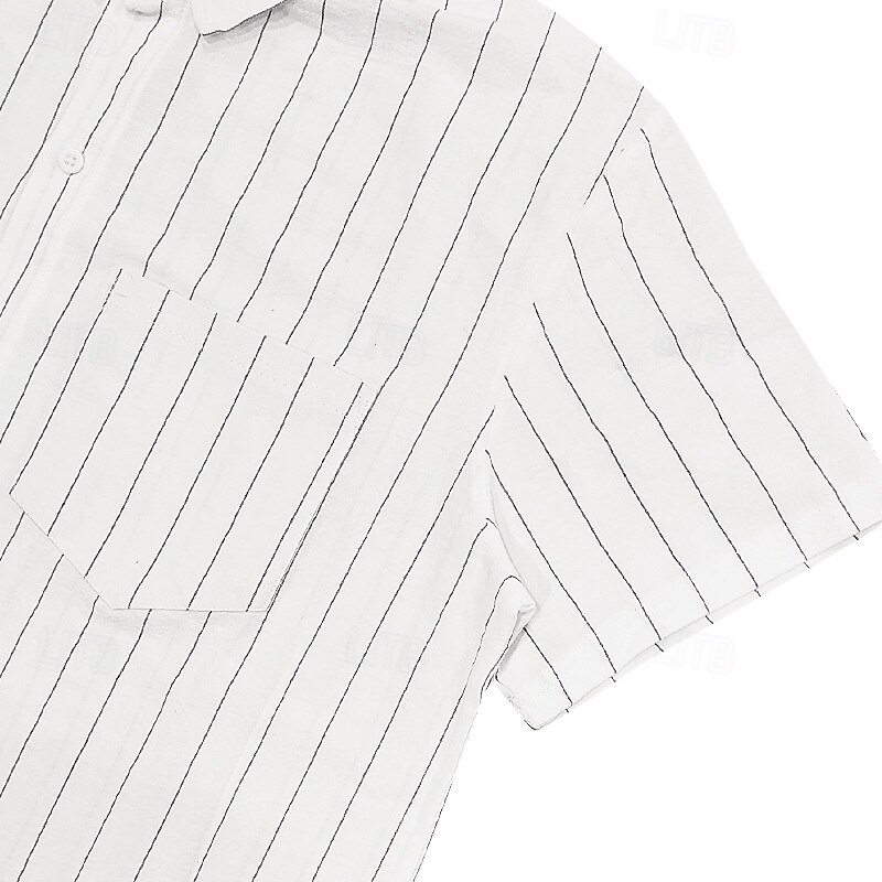 Men's Shirt Linen Shirt Casual Shirt Button Up Shirt Cotton Shirt Stripes Vacation Street Black White Navy Blue Khaki Short Sleeve Turndown Summer Clothing Apparel Button-Down 16