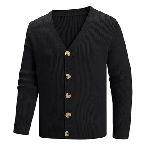 • CLASSIC DESIGN: This casual men's cardigan features a button closure, V-neck, single-breasted ribbed cuffs and hem, and a classic solid color, adding a touch of sophistication to your look. The knitted pattern adds a stylish touch to this classic sweater. This sweater is a must-have in your wardrobe.