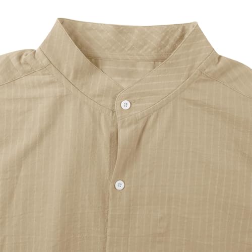 Cambkatl Stand Collat Linen Dress Shirts for Men Long Sleeve Stretch Formal Business Casual Button Down Wedding Prom Shirts 7