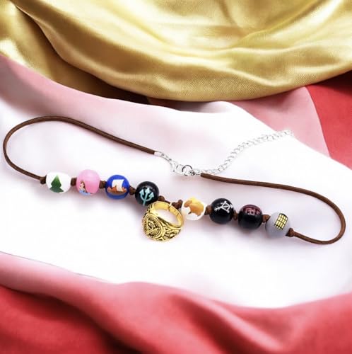 • ✅ PERFECTLY FIT & BRILLIANT GIFT IDEA – The necklace consists of a quality brown faux leather cord which has a lobster clasp closure. There are eight colorful wooden beads and a ring charm in the middle. You can use it everyday or as a part of a cosplay costume. Choice is up to you!