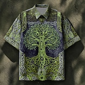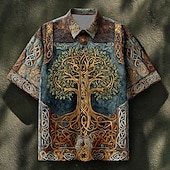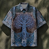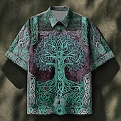 More information about Men's Celtics Tree Of Life Shirt Summer Shirt Button Up Shirt Short Sleeve Vintage Retro Dailywear Holiday Summer Spring Turndown 3D Print Collared Shirts Front One Pocket Blue green Blue Brown Green