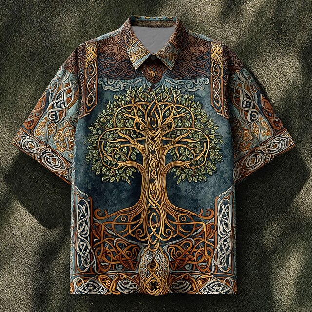 Men's Celtics Tree Of Life Shirt Summer Shirt Button Up Shirt Short Sleeve Vintage Retro Dailywear Holiday Summer Spring Turndown 3D Print Collared Shirts Front One Pocket Blue green Blue Brown Green 10