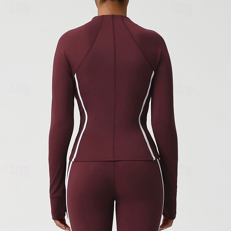 More information about Women's Solid Colored Tennis Shirt Stylish Moisture Wicking Breathable Tennis Pickleball Running Shirt Winter Black Wine Red Tennis Clothing