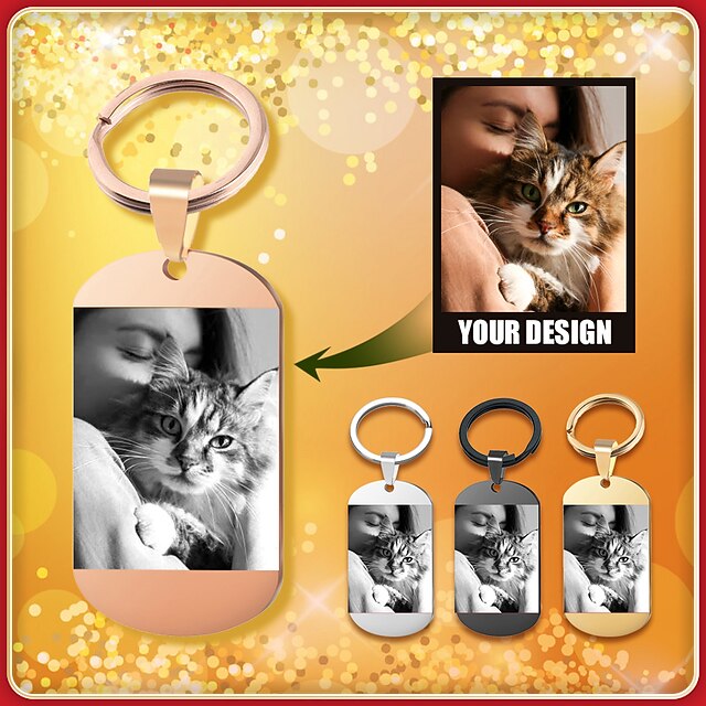 Personalized Photos Steel Keychain Double Sided, Engraved Tag Photos Text Logo Stainless Steel Key Chain women/men Custom made 1