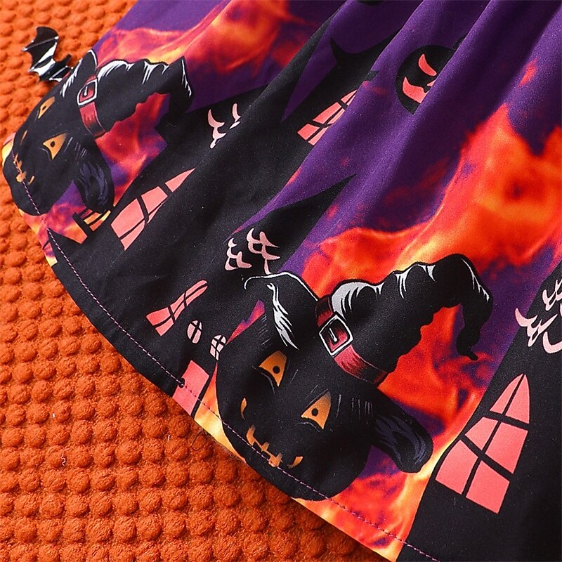 More information about Halloween Girls' 3D Bat Castle Dress Long Sleeve Spring Fall Daily Holiday Vacation Casual Halloween Custome Little Kids(4-7ys) 4-7 Years Casual Dress A Line Dress Knee-length Polyester Regular Fit