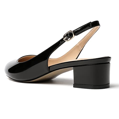 MODENCOCO Women's Ankle Strap Patent Round Toe Slingback Chunky Low Heel Pumps Shoes 1.5 Inch 1