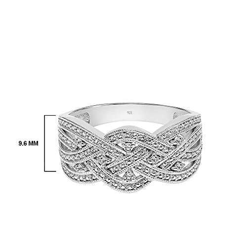 Braided Diamond Wedding Rings for Women; Anniversary or Promise Rings for Her in 925 Sterling Silver or 18K Yellow Gold Vermeil, Vintage Wide Braid Womens Wedding Band, 0.04 Cttw (I-J Color, I2-I3 1