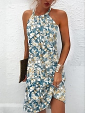 More information about Women's Mini Dress Casual Dress Petite Dress Sundress Summer Dress Vintage Ethnic Vacation Cocktail Party Beach Loose Fit Floral Sleeveless Halter Neck Blue Summer