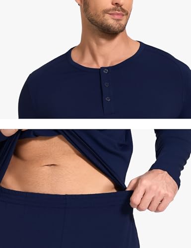 HOT ! GYS Bamboo Viscose Men's Pajama Sets 2 Piece Long Sleeve Sleep Set with Pockets