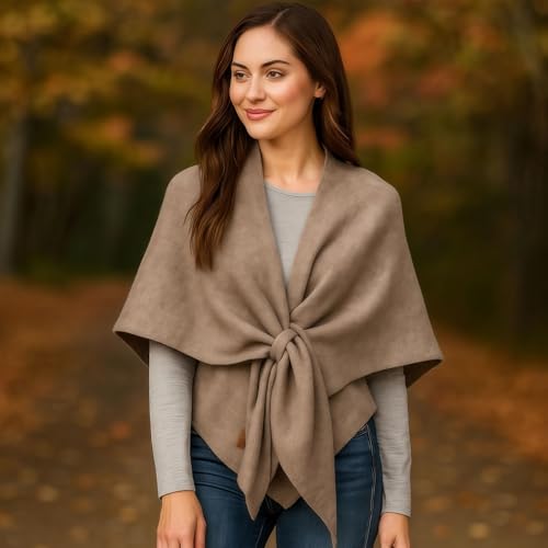 • Material: This shawl is made of polyester, which is warm, soft, and comfortable to wear. It's stylish and comfortable, enhancing the look while also providing comfort and durability. It's made of soft, stretchy knit with a front tie. Gettoreach Women's Solid Color Scarf