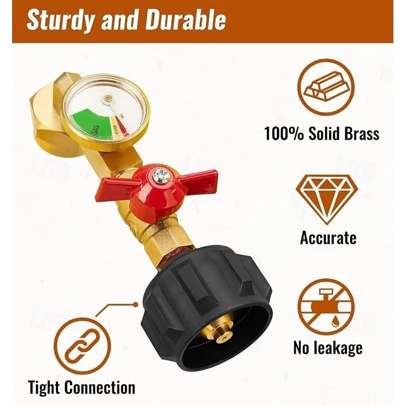 HOT ! Heavy-Duty Propane Refill Adapter 1lb to 20lb Easy-Fill Propane Refill Adapter with Valve & Gauge Ideal for Outdoor Cooking & BBQ Grills