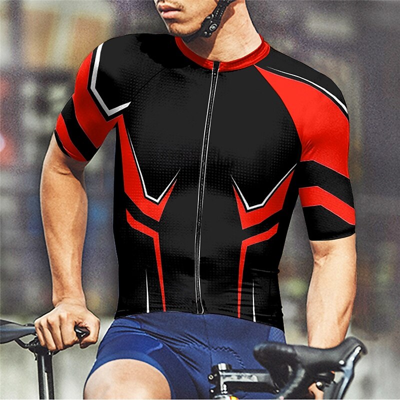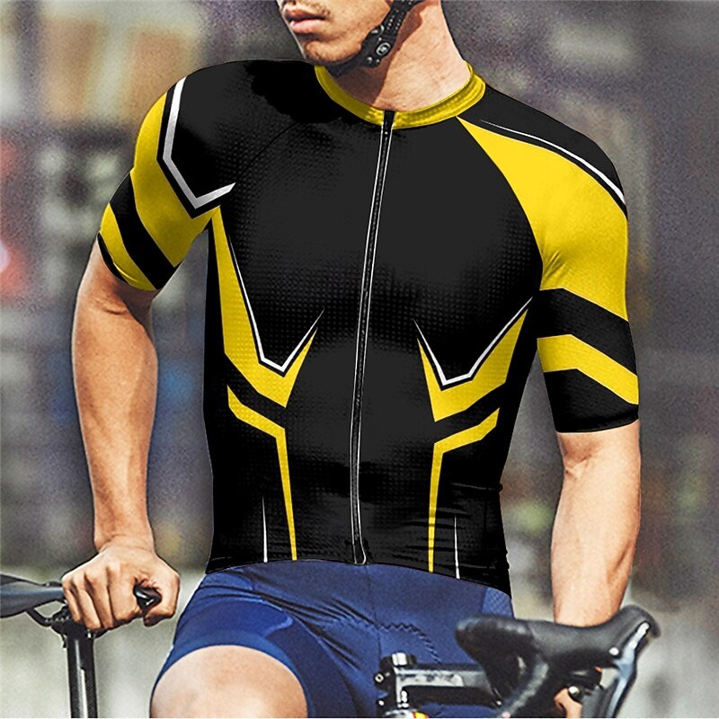 Men's Cycling Jersey Geometric Short Sleeve Bike Tee Tshirt Jersey with 3 Rear Pockets Mountain Bike MTB fast Dry Anatomic Design Wicking Breathable Sports Yellow Red Blue Clothing Apparel